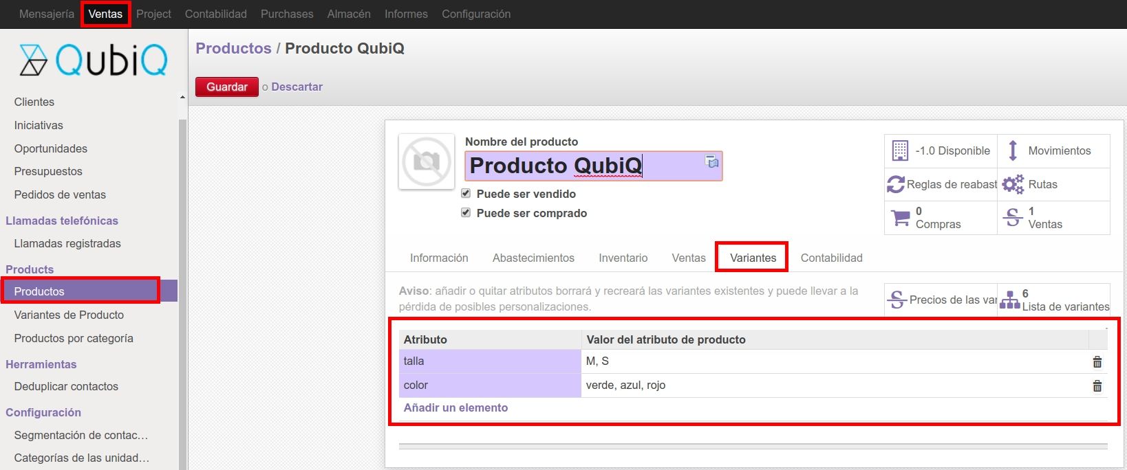 3. HACER UN PEDIDO DE VENTA CON DISTINTAS VARIANTES DE PRODUCTO