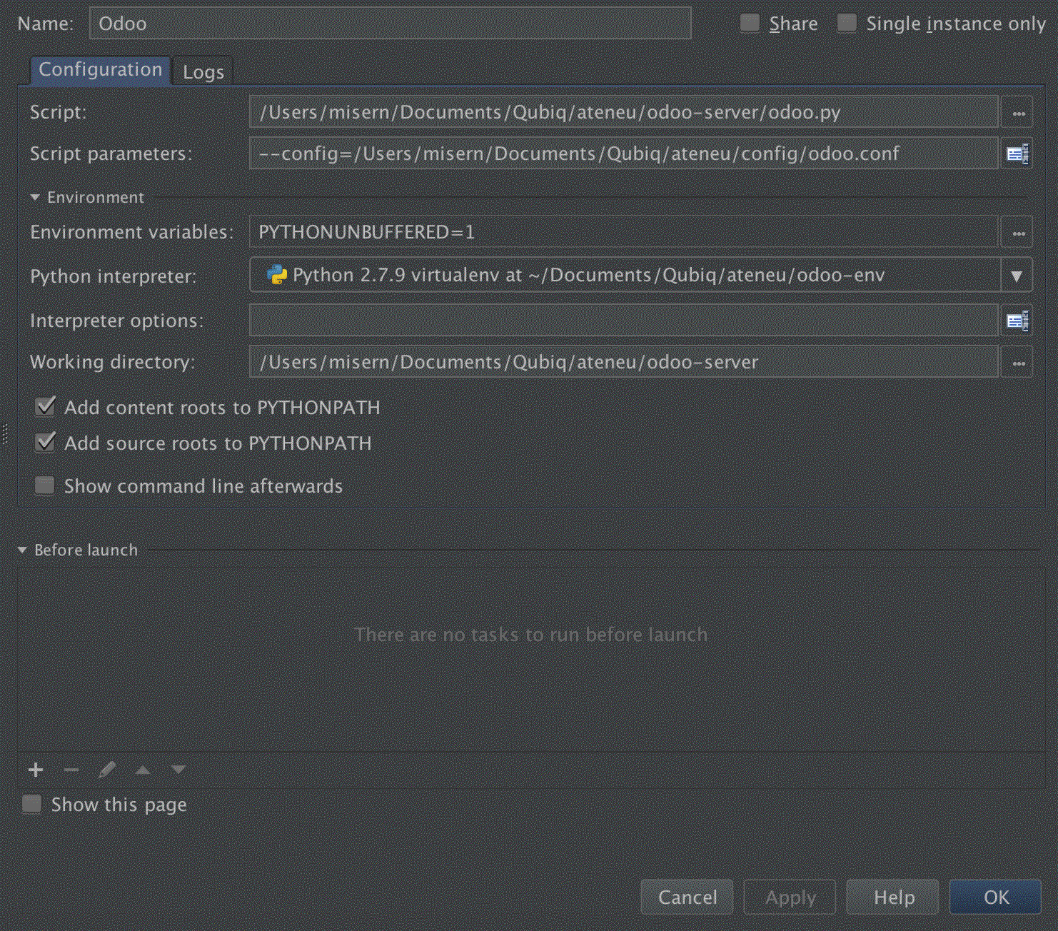 Entorno de desarrollo Odoo 9 Mac OSX Pycharm