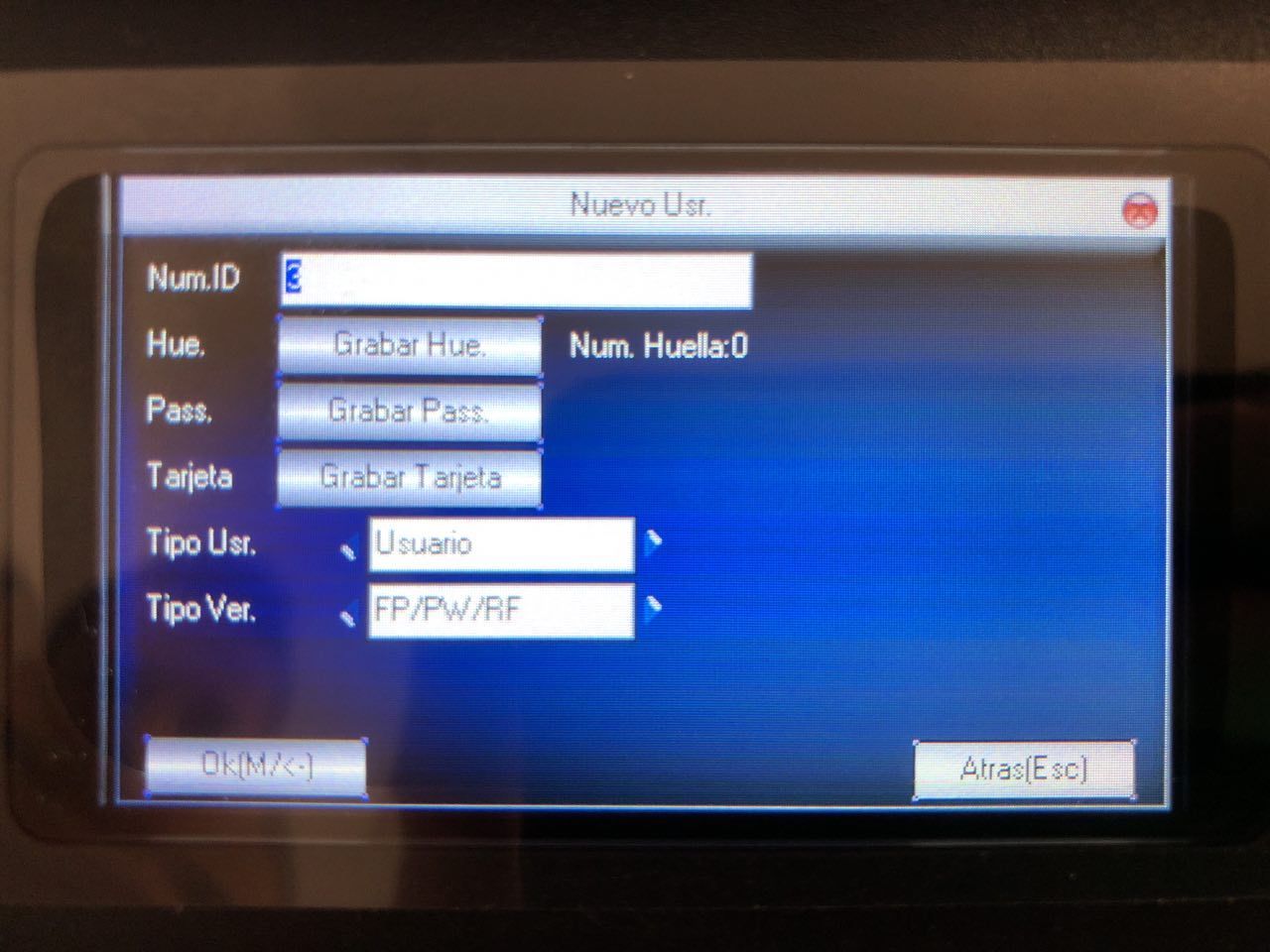 Una vez configurado el nuevo dispositivo deberemos de cargar los usuarios creados en el dispositivo: