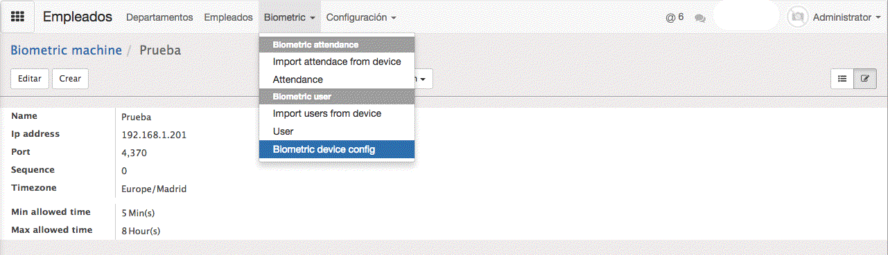 Empleados -> Biometric -> Biometric device config