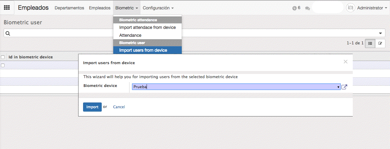 Empleados -> Biometric -> Import attendace from device.