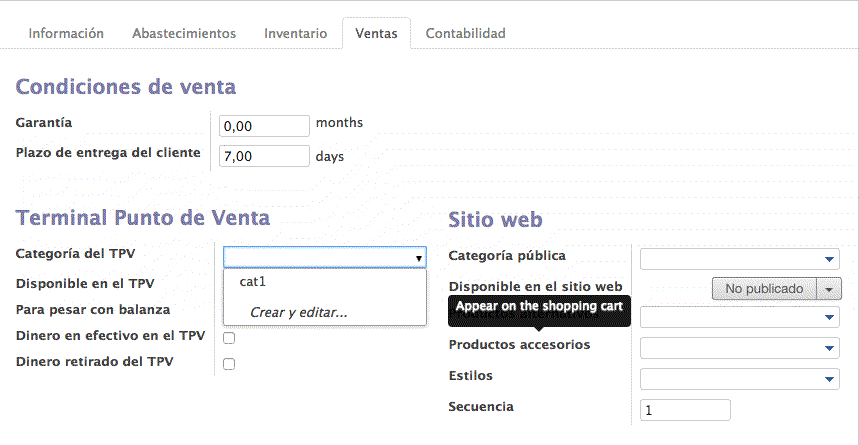 2.- Asignar al TPV las categorías correspondientes en el campo Available Product Categories.