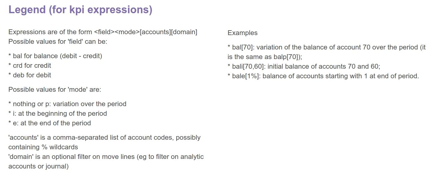 Expression: Basándonos en la leyenda comentada anteriormente, las cuentas contables que queramos añadir. Teniendo en cuenta que queremos hacer el balance, necesitamos los datos a final del periodo. Y como estamos definiendo el concepto "Inmobilizado Intangible", necesitamos las cuentas contables 20%, 280% y 290%. El aspecto de nuestra expresión quedará así --> bale[20%,280%,290%].