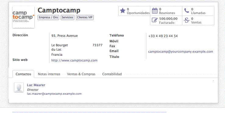 Categoría de empresa : Es la categoría asociada y la etiqueta que después aparecerá como en la ficha del cliente. Le asignamos 'Clientes VIP'.