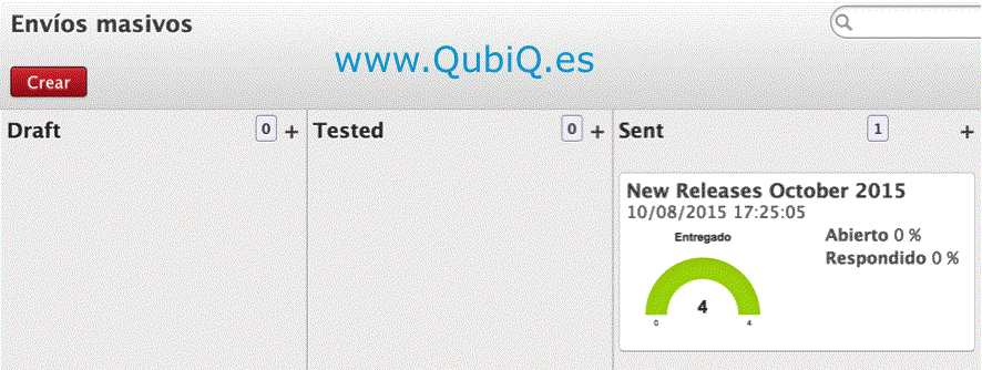 Y podremos proceder al envío de prueba para constatar que se recibe bien y en el formato adecuado. Si es así, ya podemos enviar los correos a todos los destinatarios. Podremos monitorizar la campaña desde el mismo menú: